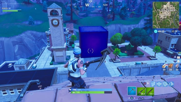 Tilted Towers, der zu Beginn der Spiele als einer der am dichtesten besiedelten Orte auf der Fortnite-Karte gilt, beherbergt jetzt einen ungewöhnlich großen Würfel mit übernatürlichen Kräften.